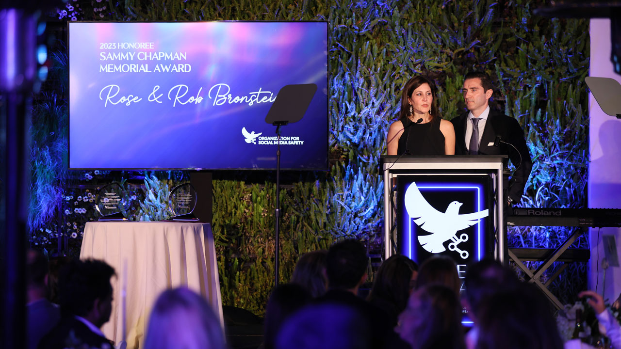 The Organization fo Social Media Safety Gala honored social media heroes for their work to make social media safer for teens. Buckets Over Bullying founders, Rose and Rob Bronstein, were awarded the Sammy Chapman Memorial Award for their advocacy work to protect families from the devastating consequences of cyberbullying.