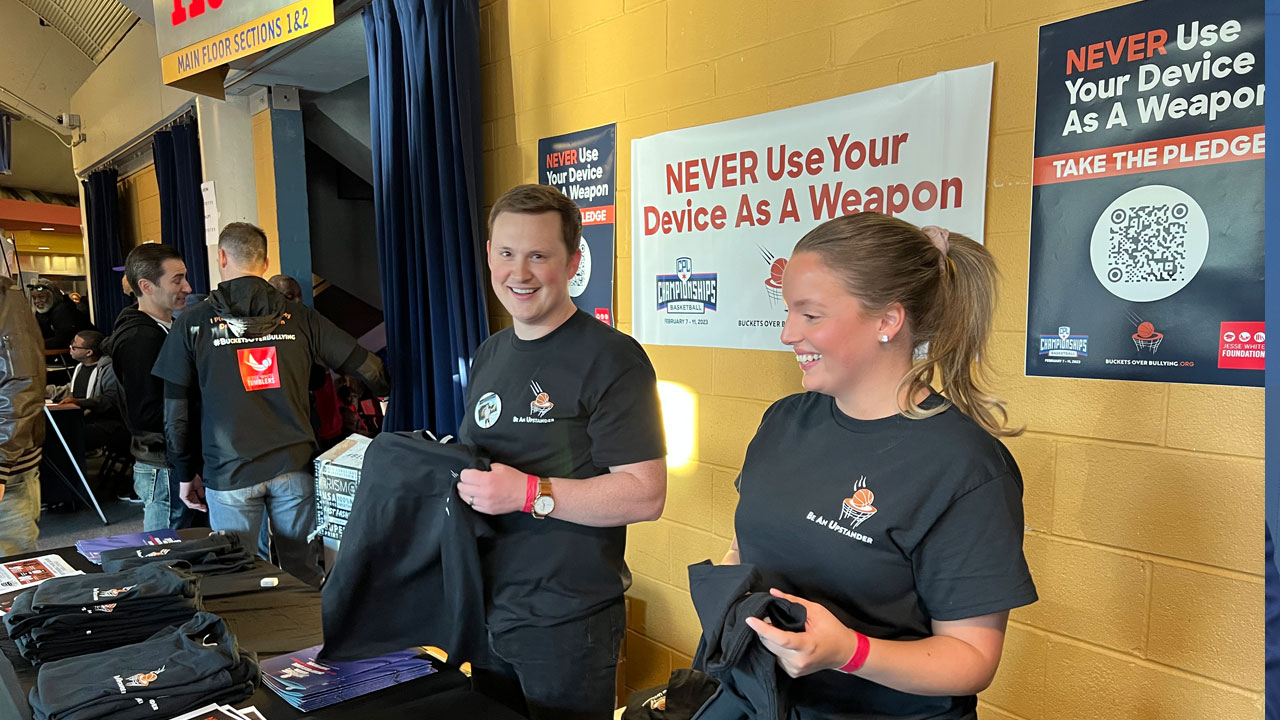 “Take the Pledge,” a cyberbullying program presentation, was shared during both the girls and boys championship finals.
