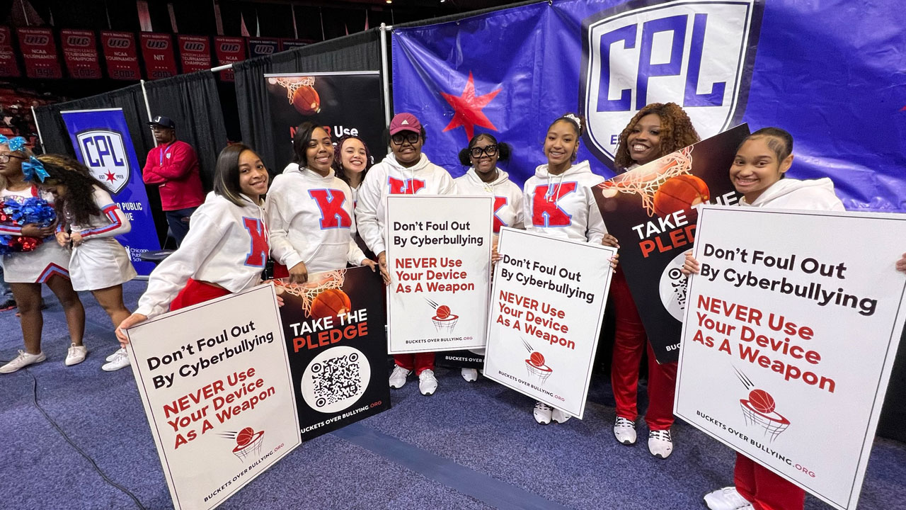 Buckets Over Bullying joined with the Chicago Public League for the CPL High School Basketball Championships in 2023 and 2024 to help stop cyberbullying of children and teens through education. Buckets Over Bullying was featured throughout CPL Basketball Championship Week with in-arena messaging.