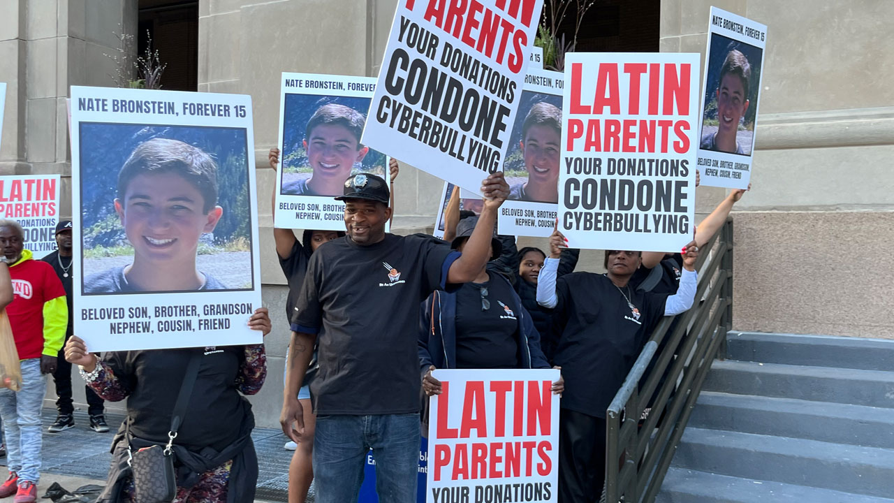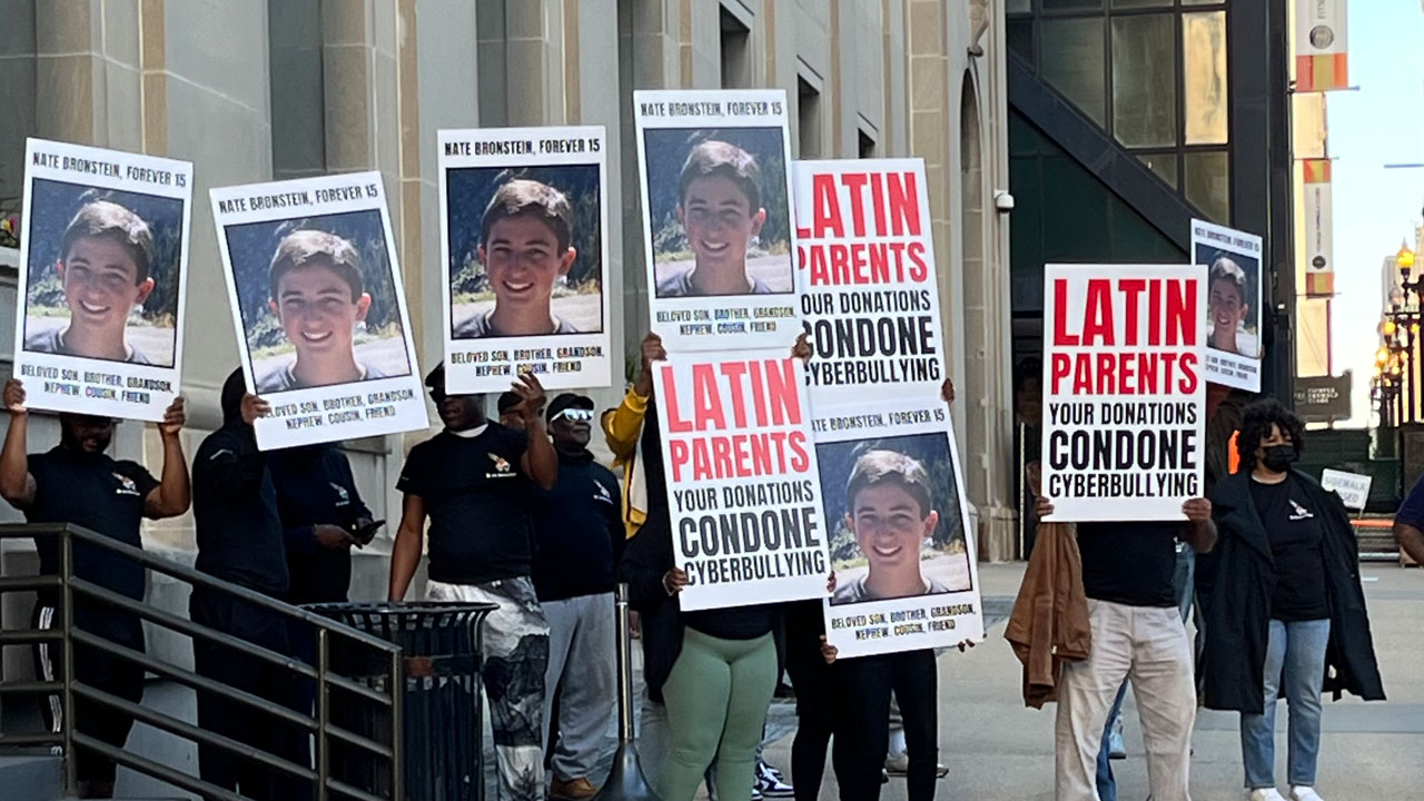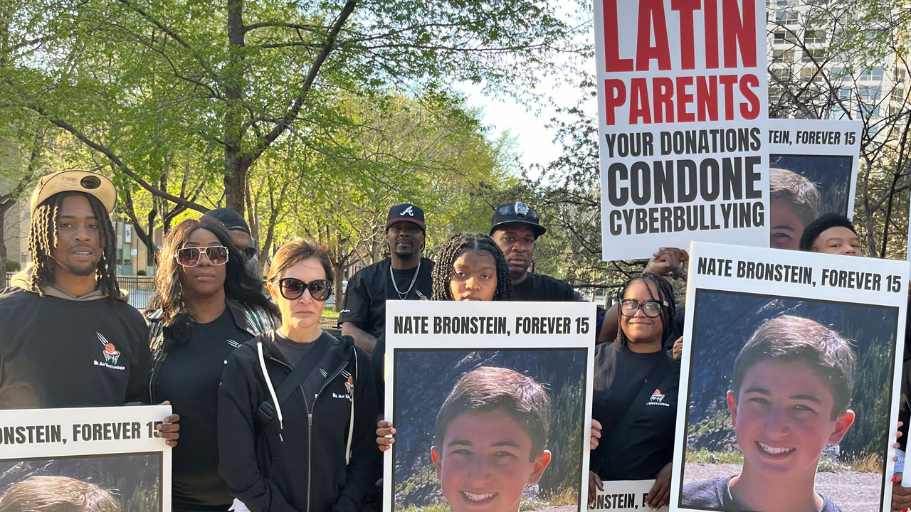 Buckets Over Bullying organized a protest at The Latin School of Chicago fundraiser to highlight the devastating consequences of cyberbullying and to bring awareness to the unsatisfactory response to Nate Bronstein’s cyberbullying report and request for help to make it stop.