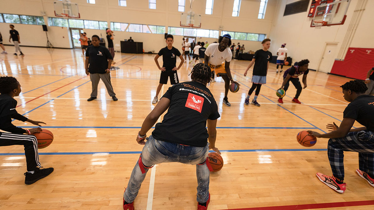 Buckets Over Bullying was joined by the renowned Chicago-based Jesse White Tumblers troupe and social media basketball trick shot sensation Tristan Jass, a.k.a. TJass, for halftime festivities.